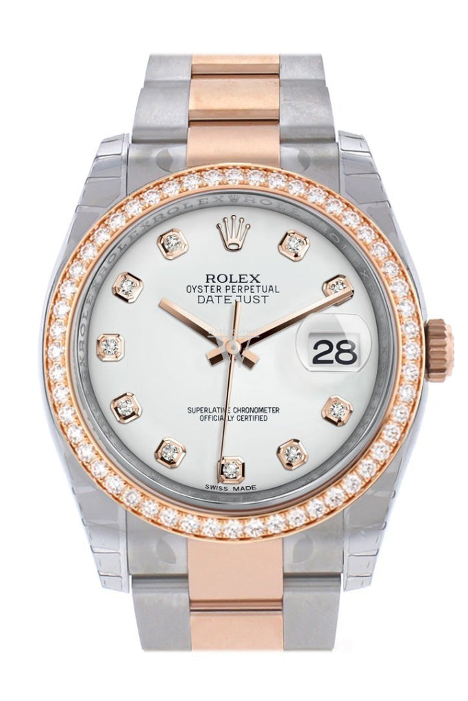 Rolex 116201 Datejust 36 Custom Diamond Bezel Custom Diamond Bezel Rolex Datejust 36 White set with diamonds Dial Oyster Rose Gold Two Tone Watch 116201