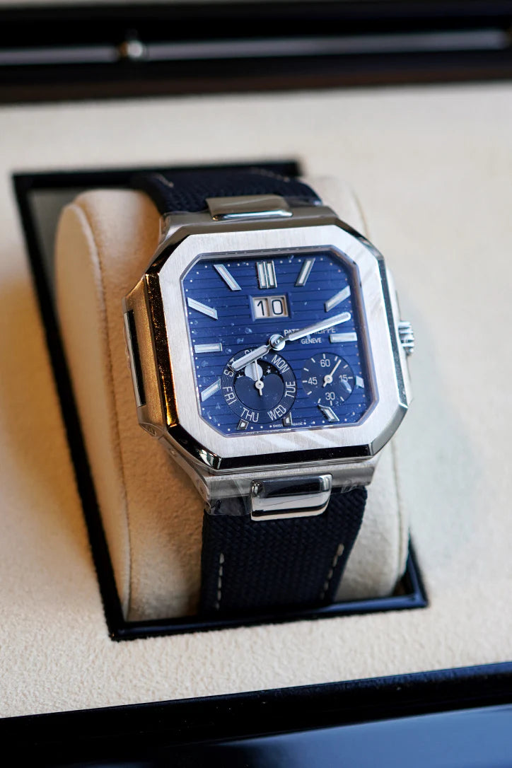 Discover timeless luxury with this authentic Patek Philippe Cubitus Grand Date Blue Dial Platinum Watch 5822P-001. Featuring meticulous Swiss craftsmanship and guaranteed 100% genuine by Watch Guy NYC, this premium timepiece is a collector’s dream. Now available at Global Sky Diamonds, located in the heart of the Diamond District – 44 W 47th St, Booth GF-10, NYC.