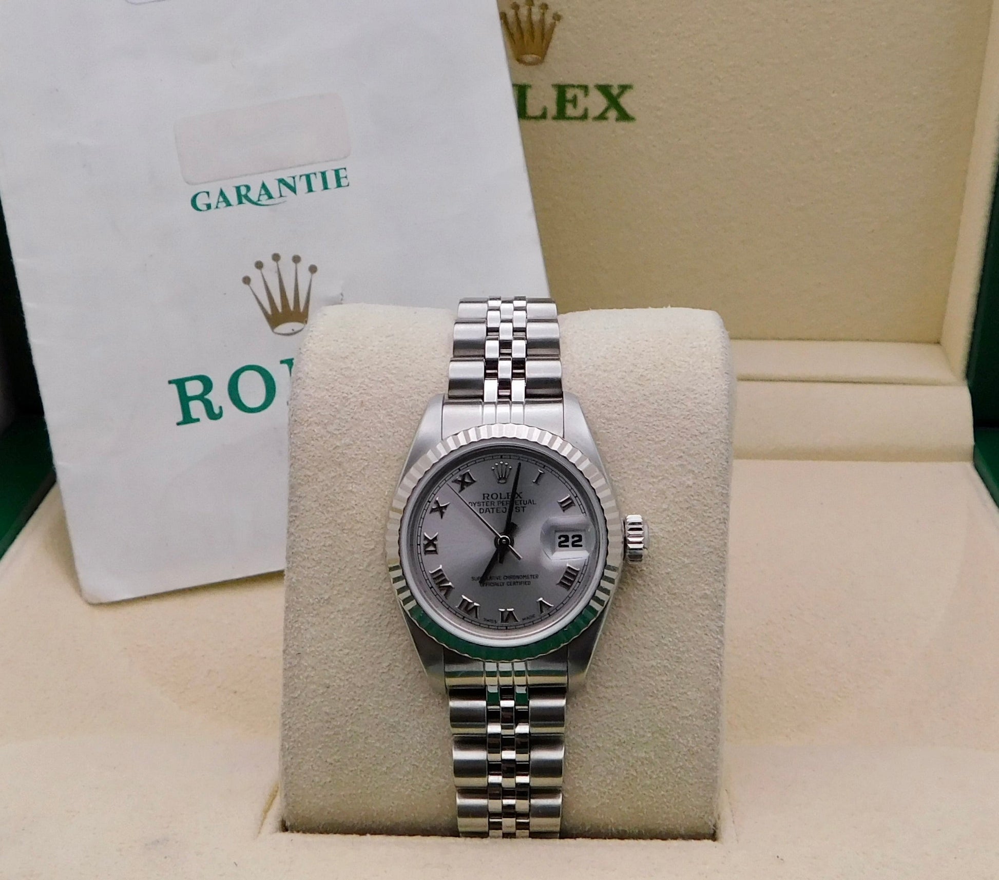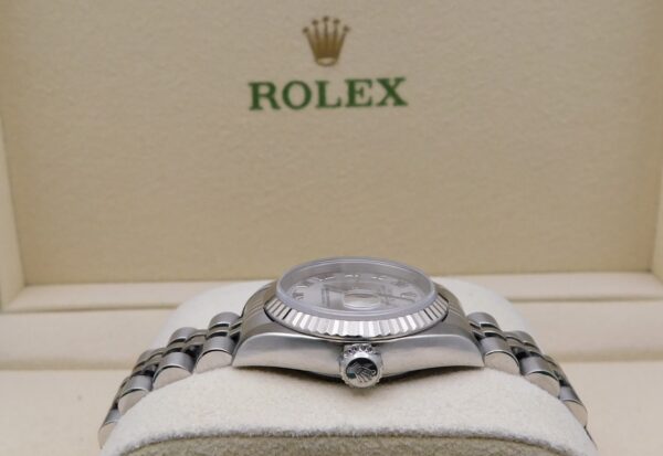 - Brand: RolexModel: DatejustReference Number: 69160Gender: Women’sMetal: Stainless Steel & White GoldCase Size: 26.00mmWrist Size: Please contact us prior to purchasing this item if the removal of links is necessary.Movement: Original Rolex Swiss Automatic Movement.Crystal: Original Rolex Scratch-Resistant Sapphire.Dial: Original Rolex Rhodium Roman Dial with the date at 3 o’clock.Bezel: Original Rolex White Gold fluted Bezel.Band: Original Rolex Stainless Steel Jubilee Band.Box: YESPapers: YES