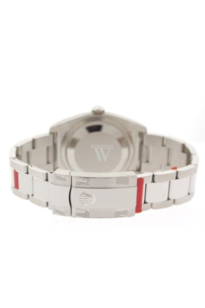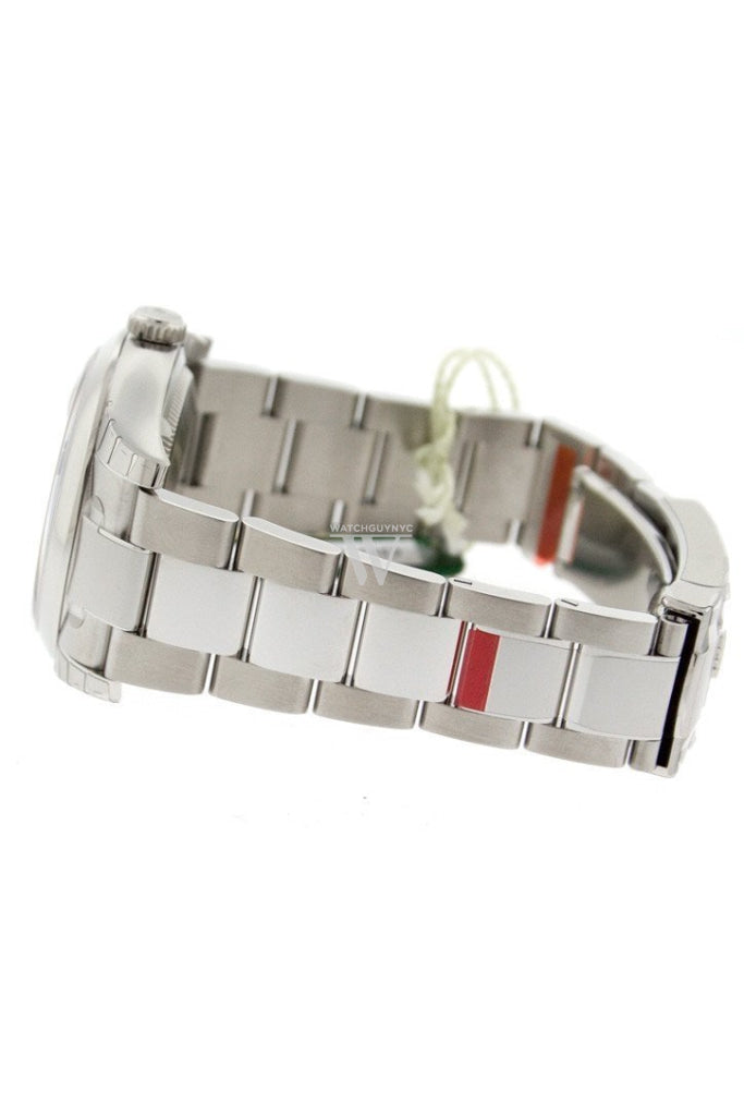 Stainless steel case with a stainless steel oyster bracelet. Fixed domed stainless steel bezel. Blue dial with luminous hands and stick hour markers. Arabic numerals mark the 3, 6 and 9 o'clock positions. minute markers around the outer rim. Dial Type: Analog. Luminescent hands and dial markers. 31 jewels automatic movement. Scratch resistant sapphire crystal. Solid case back. Case diameter: 36 mm. Round case shape. Deployment clasp. Water resistant at 100 meters/ 330 feet. Functions: hours/ minutes/ seconds. Luxury watch style. Watch label: Swiss Made. Rolex Oyster Perpetual 36 mm Blue Dial Stainless Steel Automatic Men's Watch 116000BLASO.