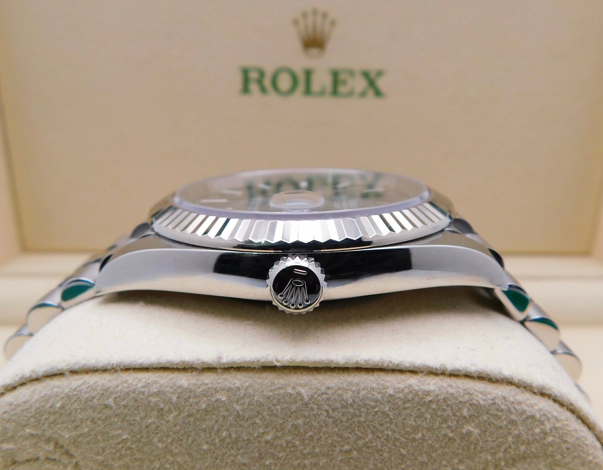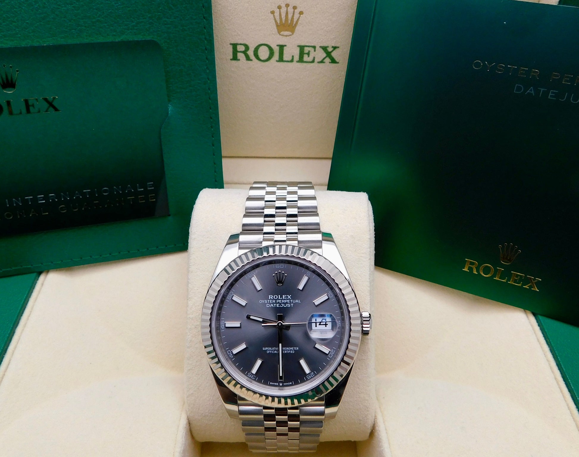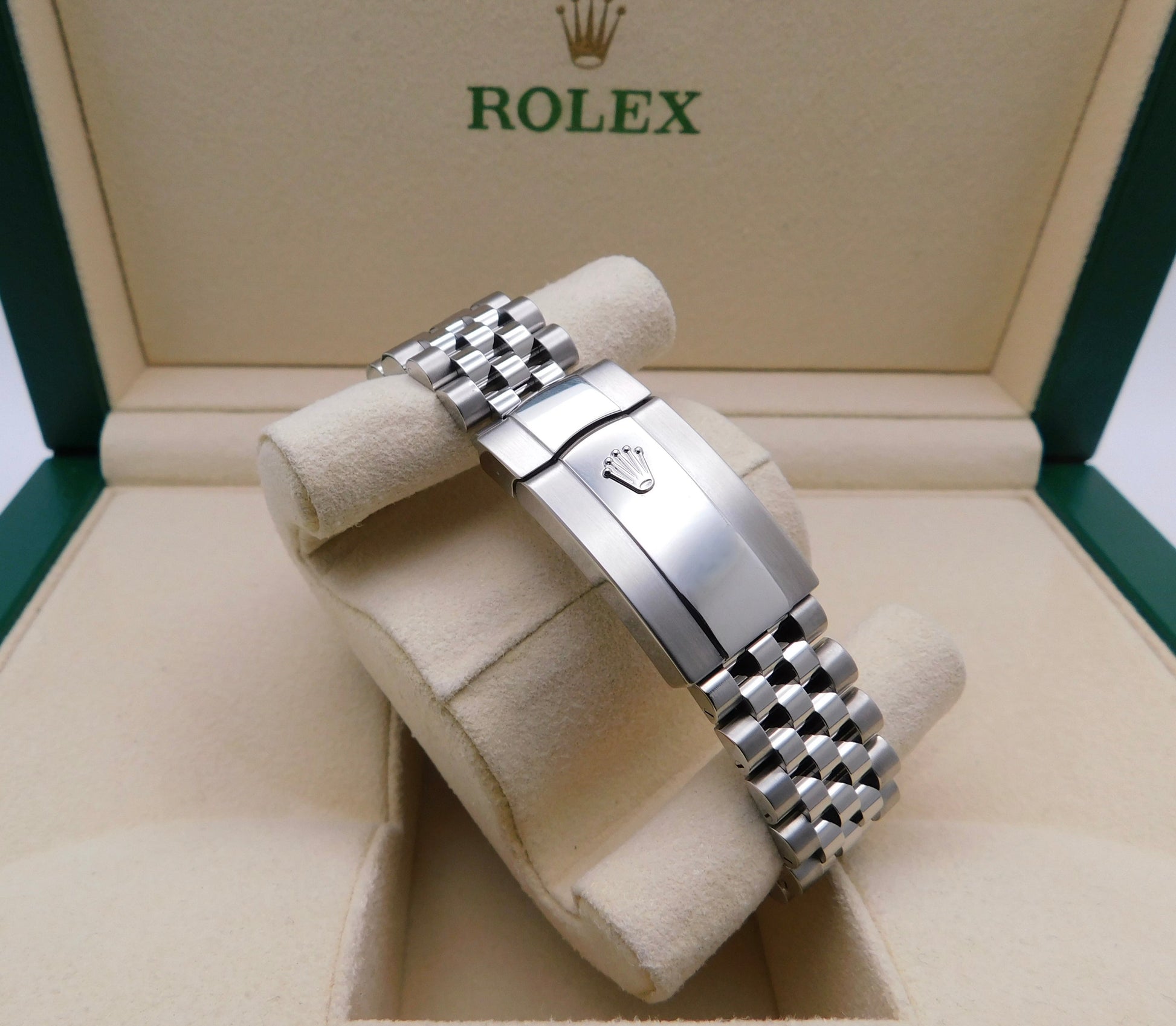 - Brand: RolexModel: DatejustReference Number: 126334Gender: Men’sMetal: Stainless SteelCase Size: 41.00mmWrist Size: Please contact us prior to purchasing this item if the removal of links is necessary.Movement: Original Rolex Swiss Automatic Movement.Crystal: Original Rolex Scratch-Resistant Sapphire.Dial: Original Rolex Rhodium Index Dial with the date at 3 o’clock.Bezel: Original Rolex White Gold Fluted Bezel.Band: Original Rolex Stainless Steel Jubilee Band.Box: YESPapers: YES