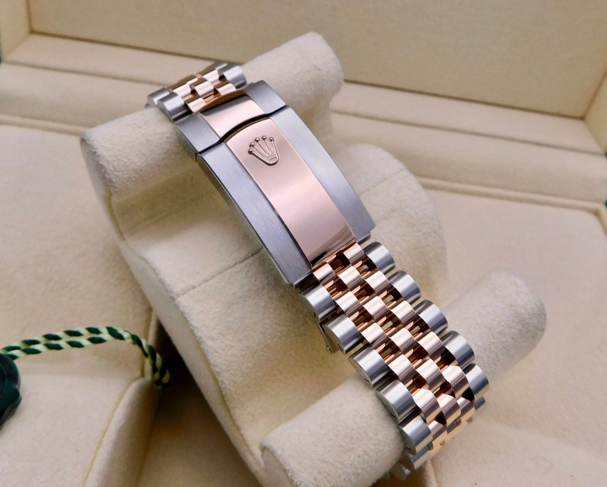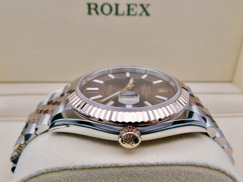 - Brand: RolexModel: DateJustReference Number: 126331Gender: Mens’Metal: 18K Rose Gold & Stainless SteelCase Size: 41.00mmWrist Size: Please contact us prior to purchasing this item if the removal of links is necessary.Movement: Original Rolex Swiss Automatic Movement.Crystal: Original Rolex Scratch-Resistant Sapphire.Dial: Original Rolex Chocolate Index Dial with date 3 o’clock.Bezel: Original Rolex 18K Rose Gold Fluted Bezel.Band: Original Rolex 18K Rose Gold & Stainless Steel Band.Box: YESPapers: YES