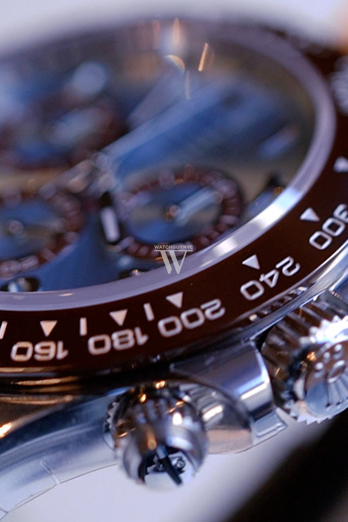 Platinum case with a platinum Rolex oyster bracelet. Fixed - ceramic bezel. Ice blue Arabic dial with silver-tone hands and index hour markers. Minute markers around the outer rim. Dial Type: Analog. Luminescent hands and markers. Chronograph - sub-dials displaying: three - 60 second, 30 minute and 12 hour. Automatic movement. Scratch resistant sapphire crystal. Screw down crown. Case diameter: 40 mm. Round case shape. Oysterlock clasp. Water resistant at 100 meters / 330 feet. Functions: chronograph, hour, minute, second. Luxury watch style. Watch label: Swiss Made. Rolex Cosmograph Daytona Ice Blue Dial Platinum Rolex Oyster Automatic Mens Watch 116506