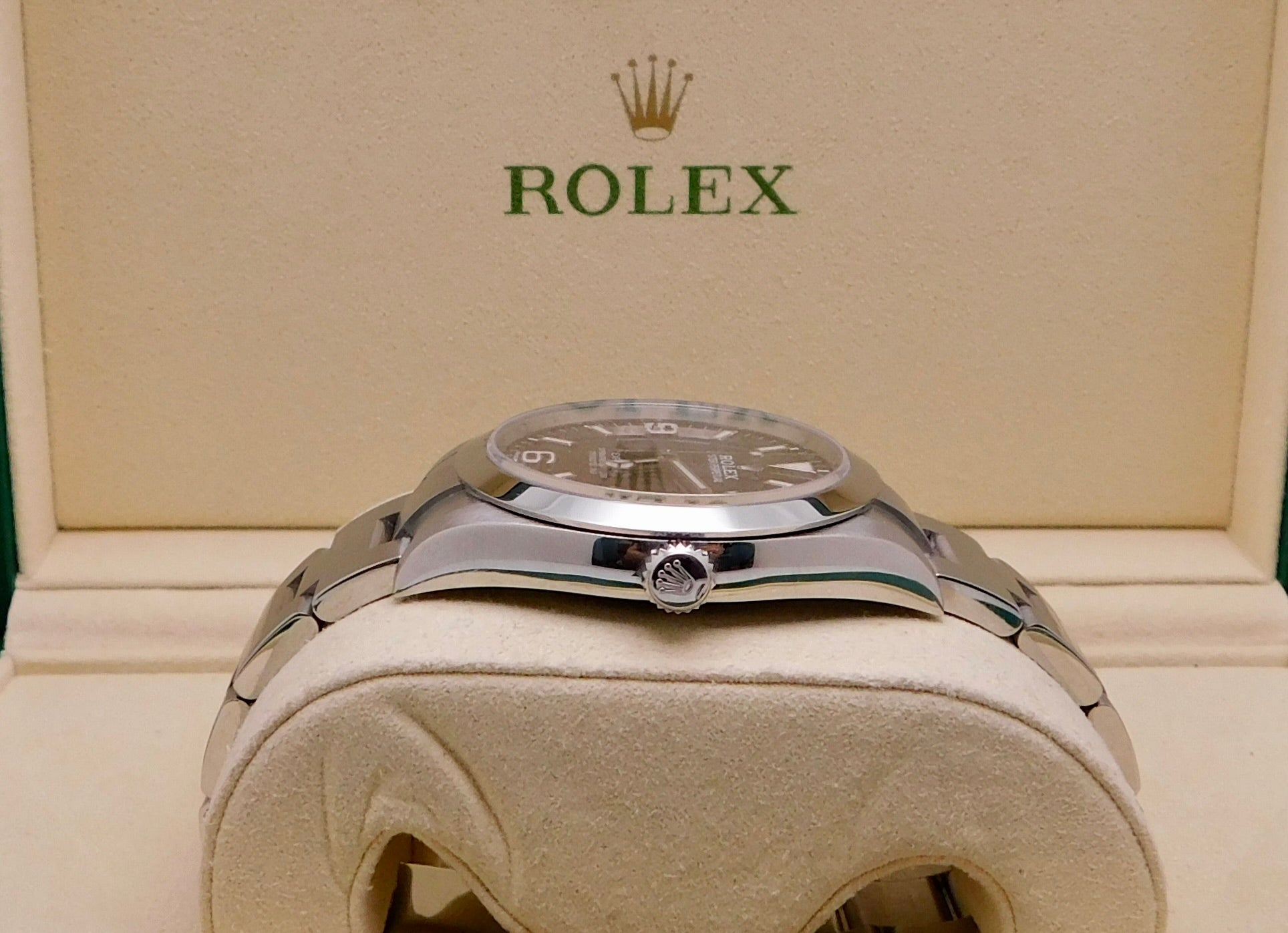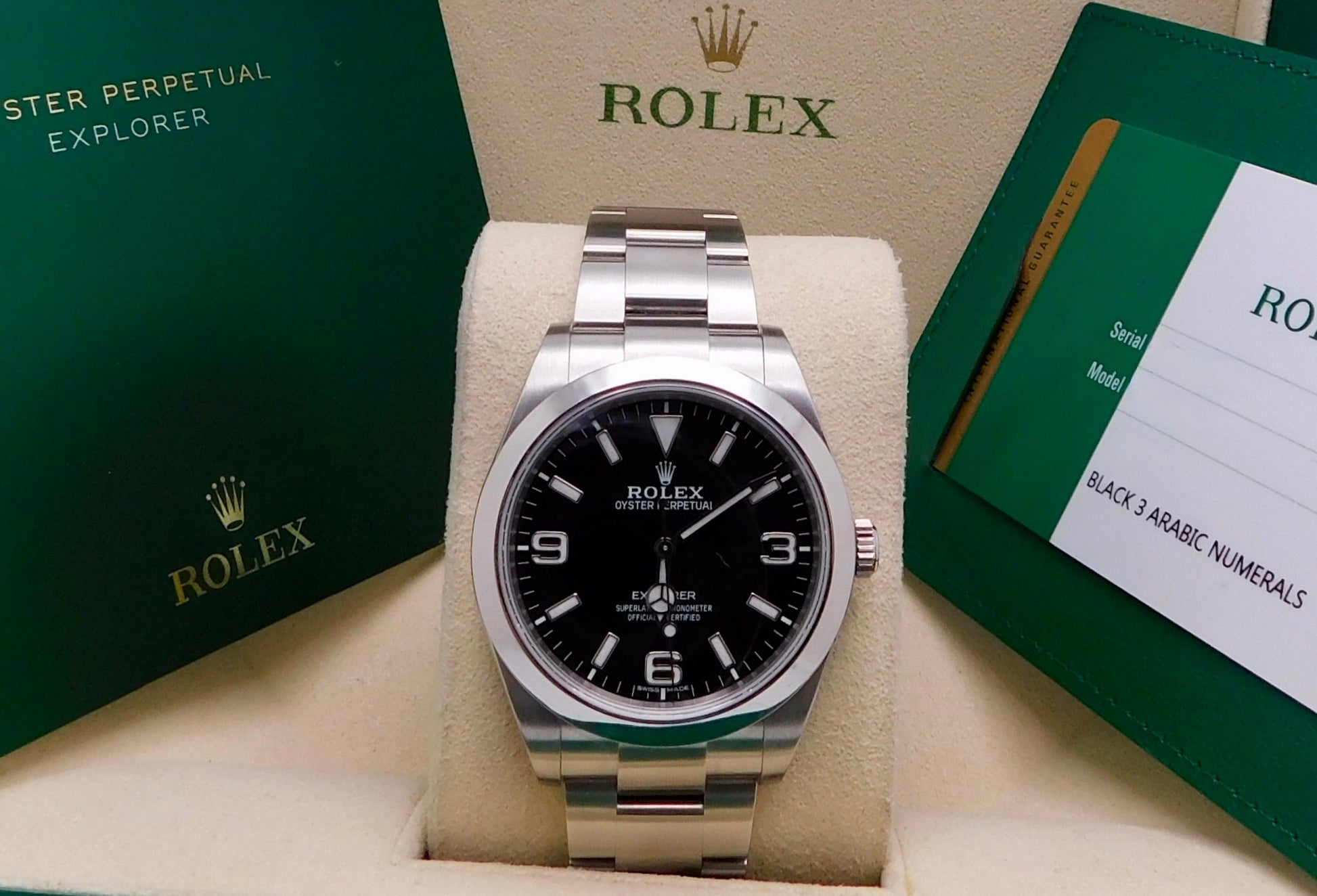 - Model: Explorer Reference Number: 214270Gender: Men’sMetal: Stainless SteelCase Size: 39.00mmWrist Size: Please contact us prior to purchasing this item if the removal of links is necessary.Movement: Original Rolex Swiss Automatic Movement.Crystal: Original Rolex Scratch-Resistant Sapphire.Dial: Original Rolex Black Dial.Bezel: Original Rolex Stainless Steel Smooth Bezel.Band: Original Rolex Stainless Steel Oyster Band.Box: YESPapers: YES