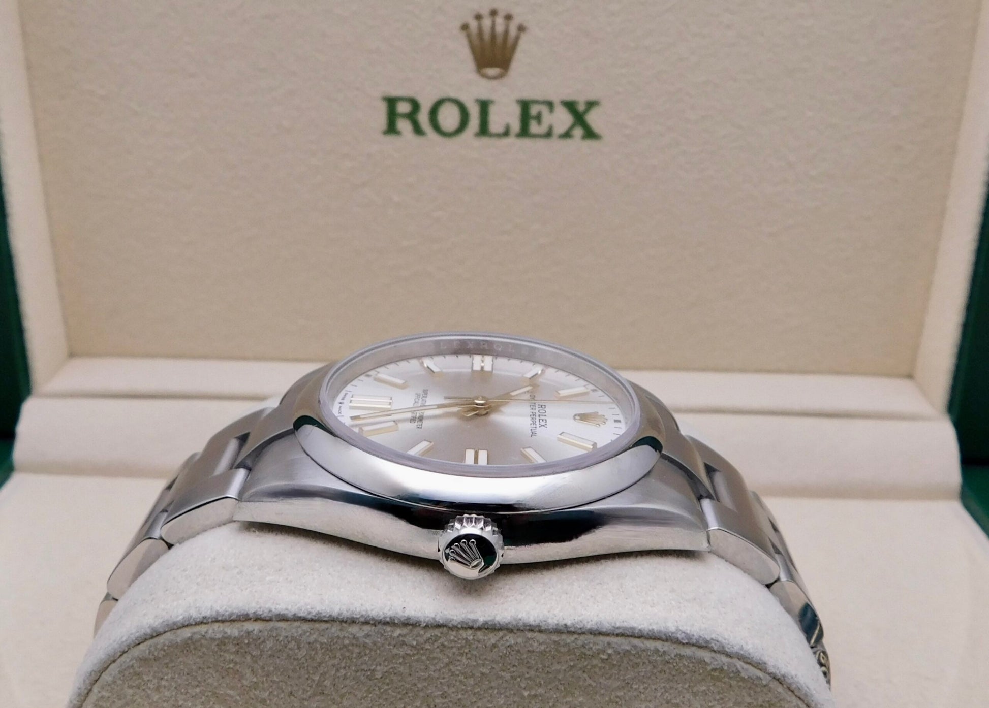 - Model: Oyster PerpetualReference Number: 124300Gender: Men’sMetal: Stainless SteelCase Size: 41.00mmWrist Size: Please contact us prior to purchasing this item if the removal of links is necessary.Movement: Original Rolex Swiss Automatic Movement.Crystal: Original Rolex Scratch-Resistant Sapphire.Dial: Original Rolex Silver Dial.Bezel: Original Rolex Stainless Steel Bezel.Band: Original Rolex Stainless Steel Oyster Band.Box: YESPapers: YES
